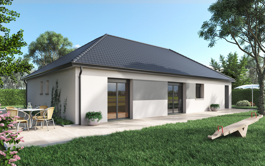 Ce modèle s’adapte à tous types de terrain en ville ou en campagne, ce qui offre à la famille la possibilité de profiter du jardin.